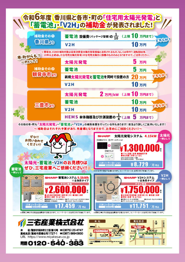 6P-住宅用太陽光発電、蓄電池、V2Hの補助金のご案内