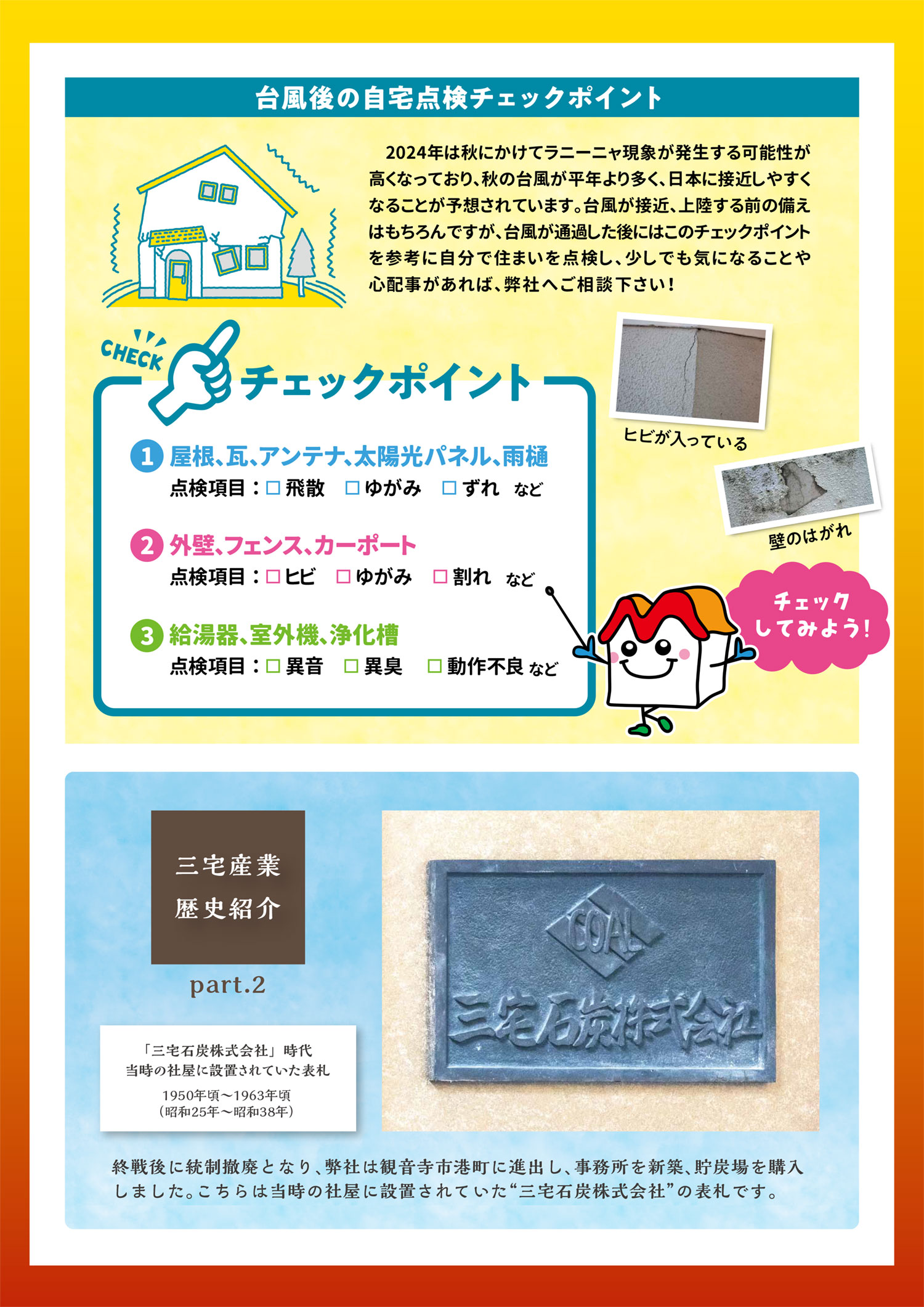 5P-台風後の自宅点検チェックポイント/三宅産業の歴史紹介