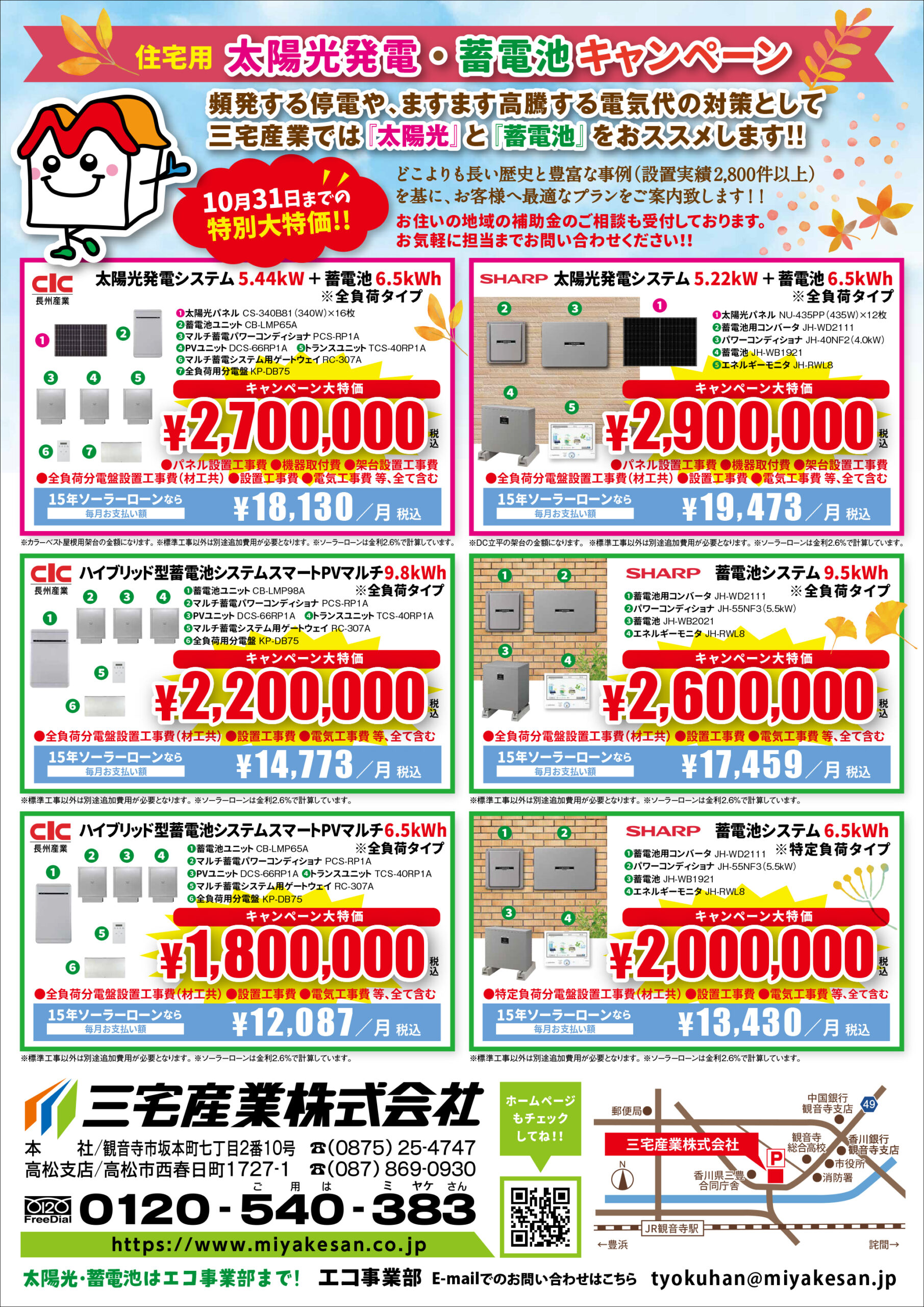 三宅産業株式会社では、【住宅用太陽光発電・蓄電池キャンペーン】を期間限定で開催いたします。