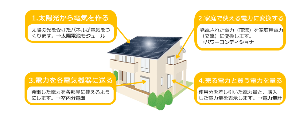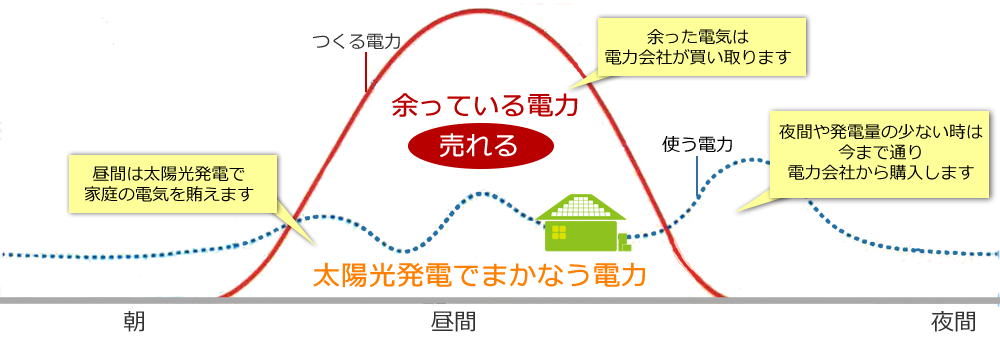 発電した電気は自宅で使用し、余った電気は電力会社が買い取ってくれます!
