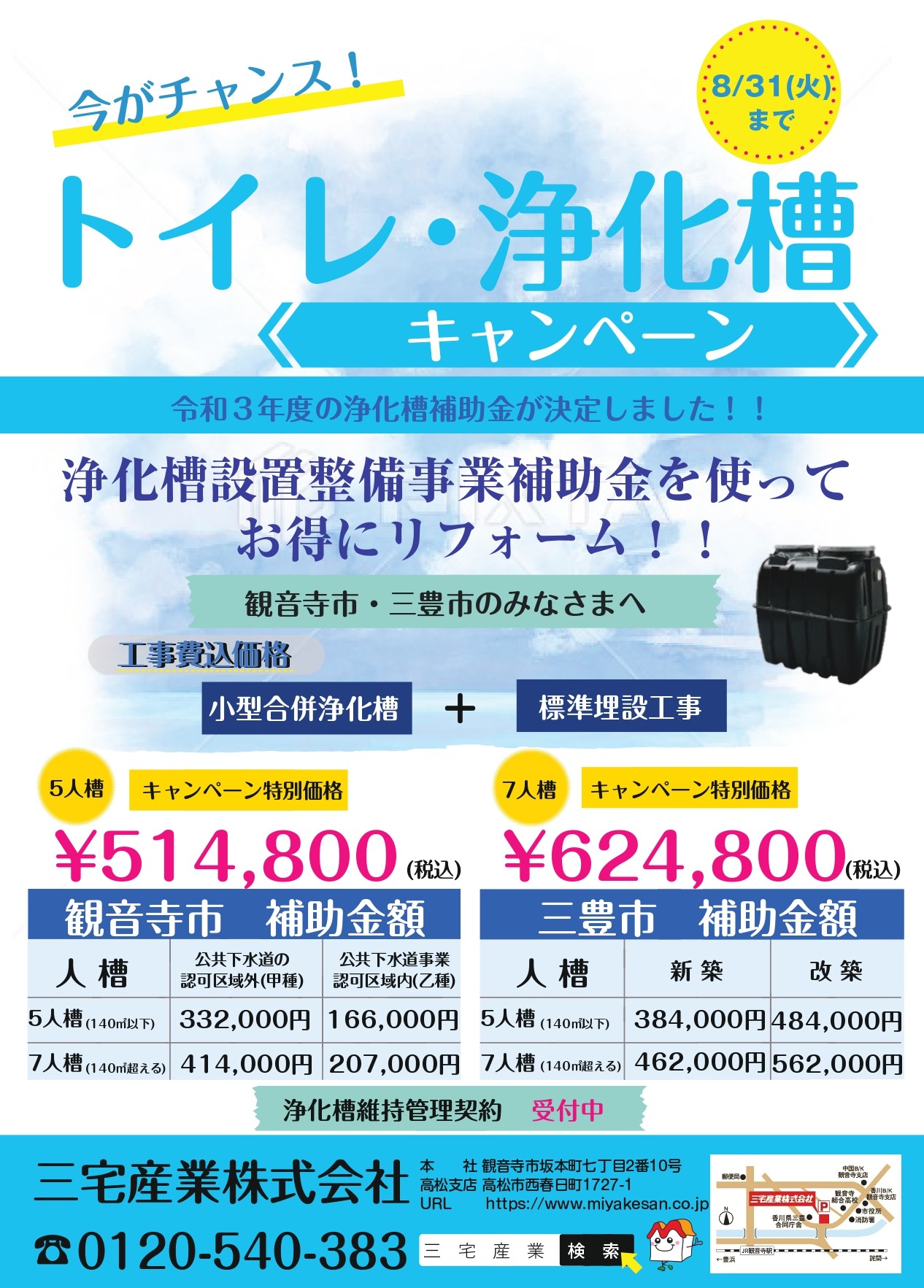 8/31まで【トイレ・浄化槽キャンペーン】を開催中